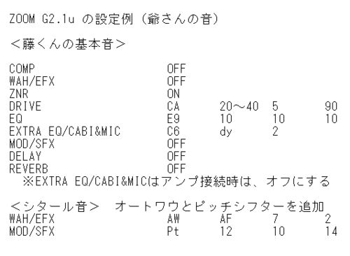 BUMP OF CHICKEN/友達の唄(ドラえもんの主題歌)イントロのエレクトリックシタールっぽい音、なんとかZOOMのG2.1uで作れないかと頑張ってみたぞい。こんな感じでどうじゃろ。参考程度にどうぞ。